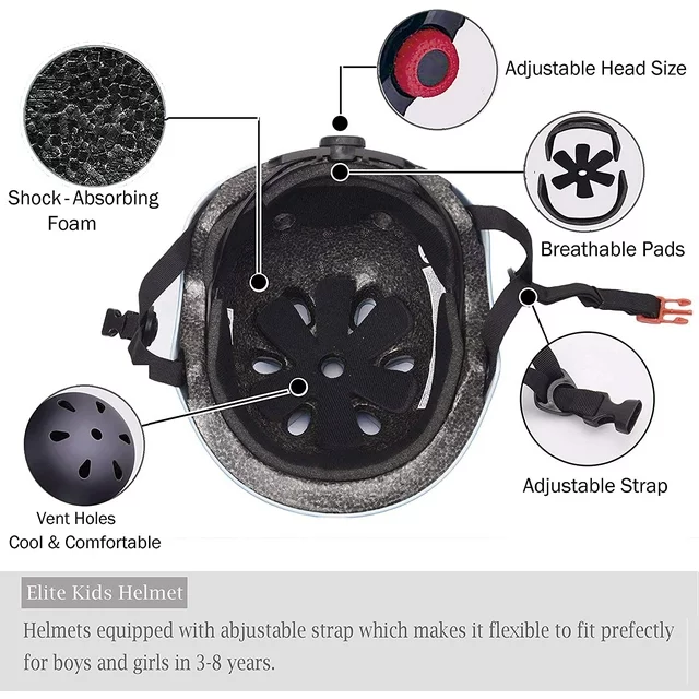 The helmet is ideal helmet for biking, skateboarding, long boarding, inline skating (roller blading) and roller skating. Lightweight and superbly well ventilated these skate helmets will ensure that you are protected from serious head injuries. The helmets are designed for maximum comfort to allow you to concentrate on your riding with the confidence that you have full head protection. And the protective gear set is specially designed to offer you perfect protection for skateboard, roller blading, bicycle and many other outdoor sports.